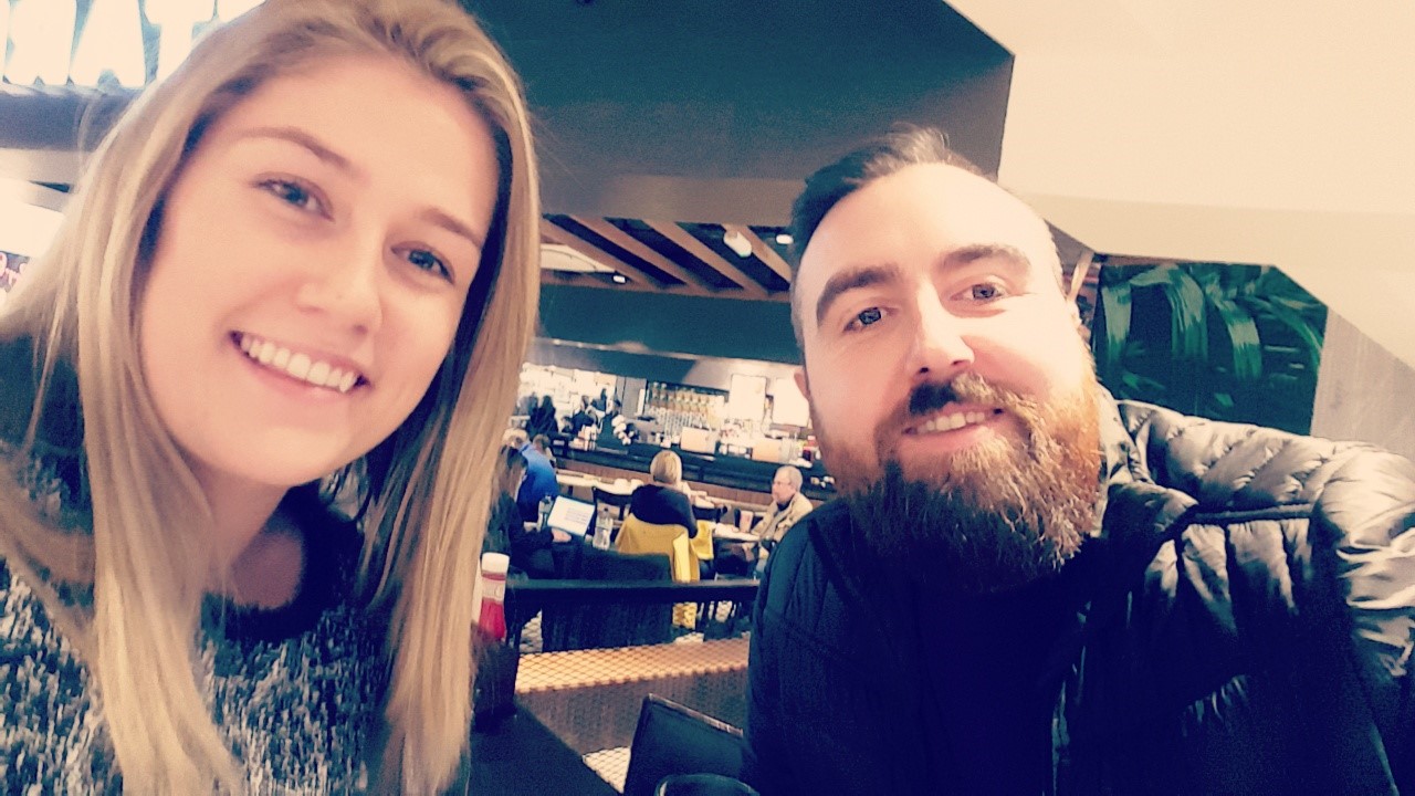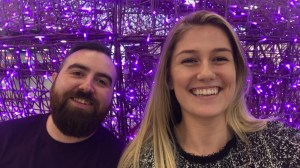We collected our bags and went to Starbucks so I could charge my phone. Despite the introduction, Luton Airport was lovely. They’d gone all out with Christmas decorations, with a freestanding illuminated purple bauble that provided a great photo opportunity. I took particular delight in the choir of school kids who sang Fairytale of New York (censored of course).