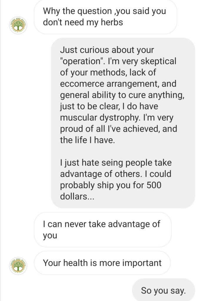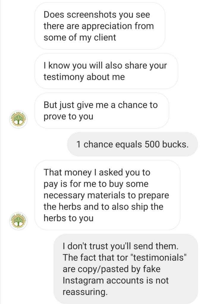 I’m not here to denounce herbal medicine, that would be ignorant of me. I have no doubt that many plants, roots and herbs have medicinal properties but I highly doubt that a random Doctor selling panaceas on Instagram is credible. Their claim to cure cancer, herpes, HIV and enlarge… appendages is totally bogus.