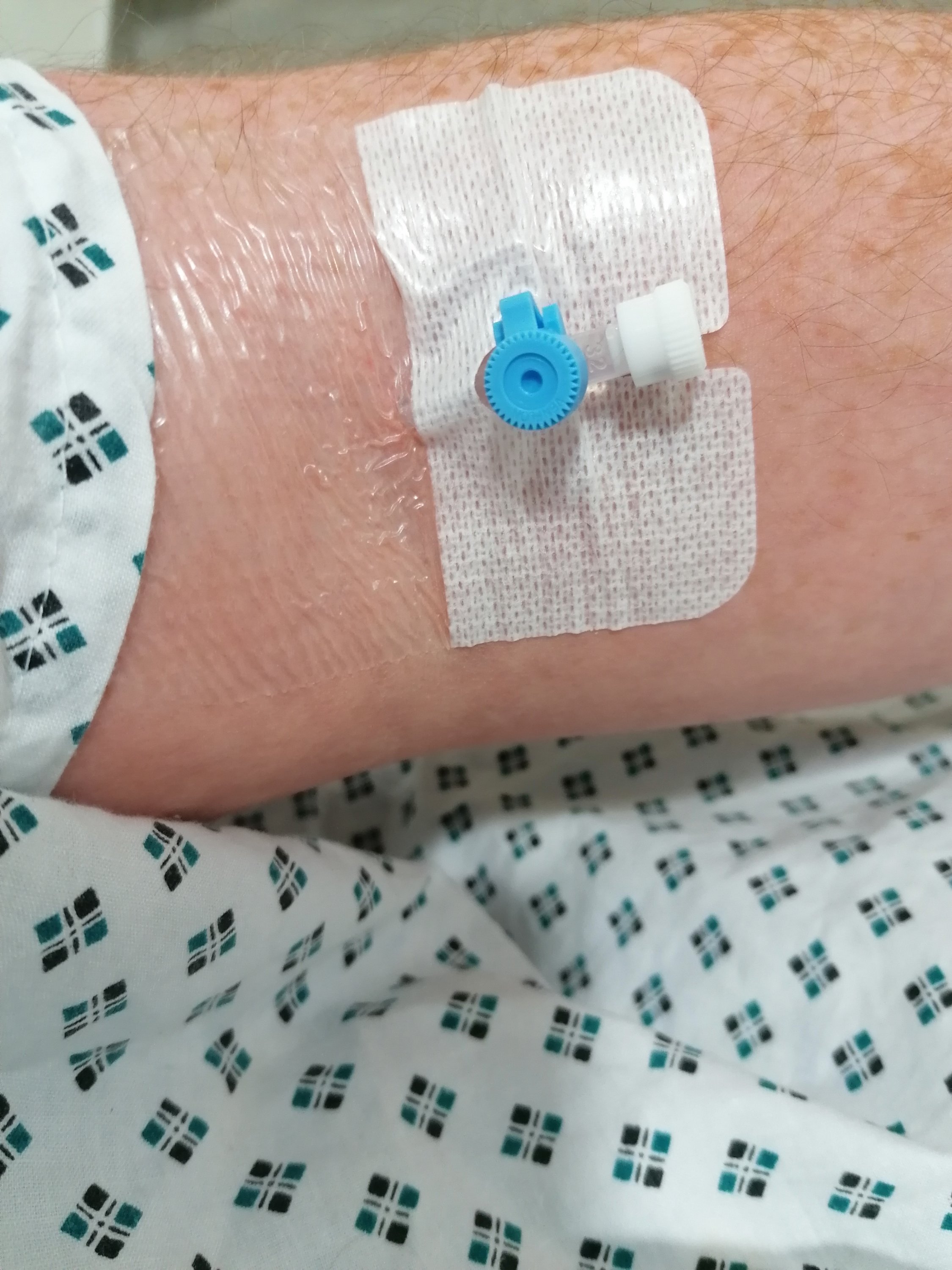 I agreed to sedation as part of the process, after a trial trying to find veins and subsequently having them insulted I’ve seen better, we got the cannula in, and now hospital issue GI Joe was ready.