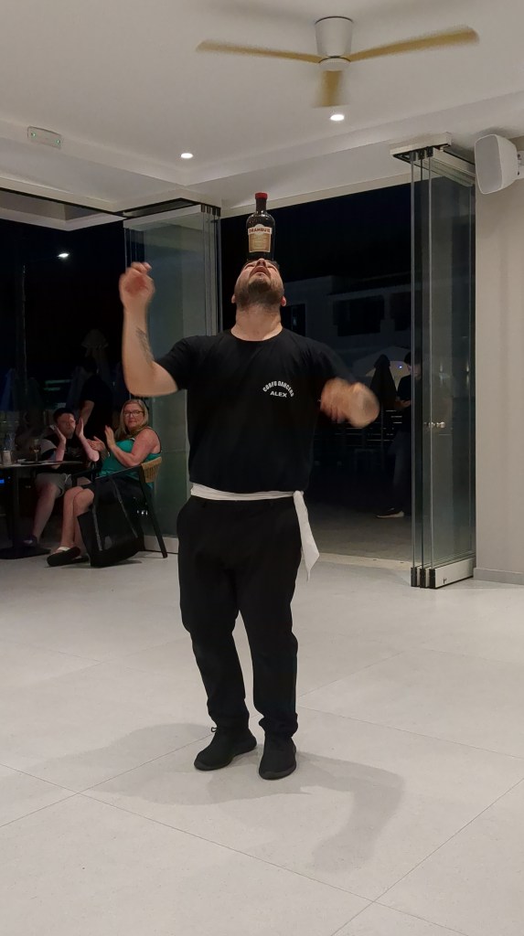 Entertainment is provided on Monday, Wednesday and Friday, with Spyros explaining they want a mix of party nights and quiet evenings. Speaking as a gentleman of a certain age, I appreciate this.