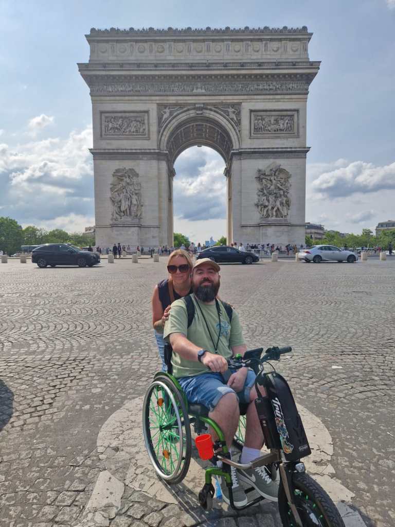 Since we were nearby, we had to stop for a selfie at the Arc de Triomphe – queuing up in the middle of the road to get the shot. I was sorely tempted to make the loop on my Triride, but decided that particular day wasn’t the right day to die.