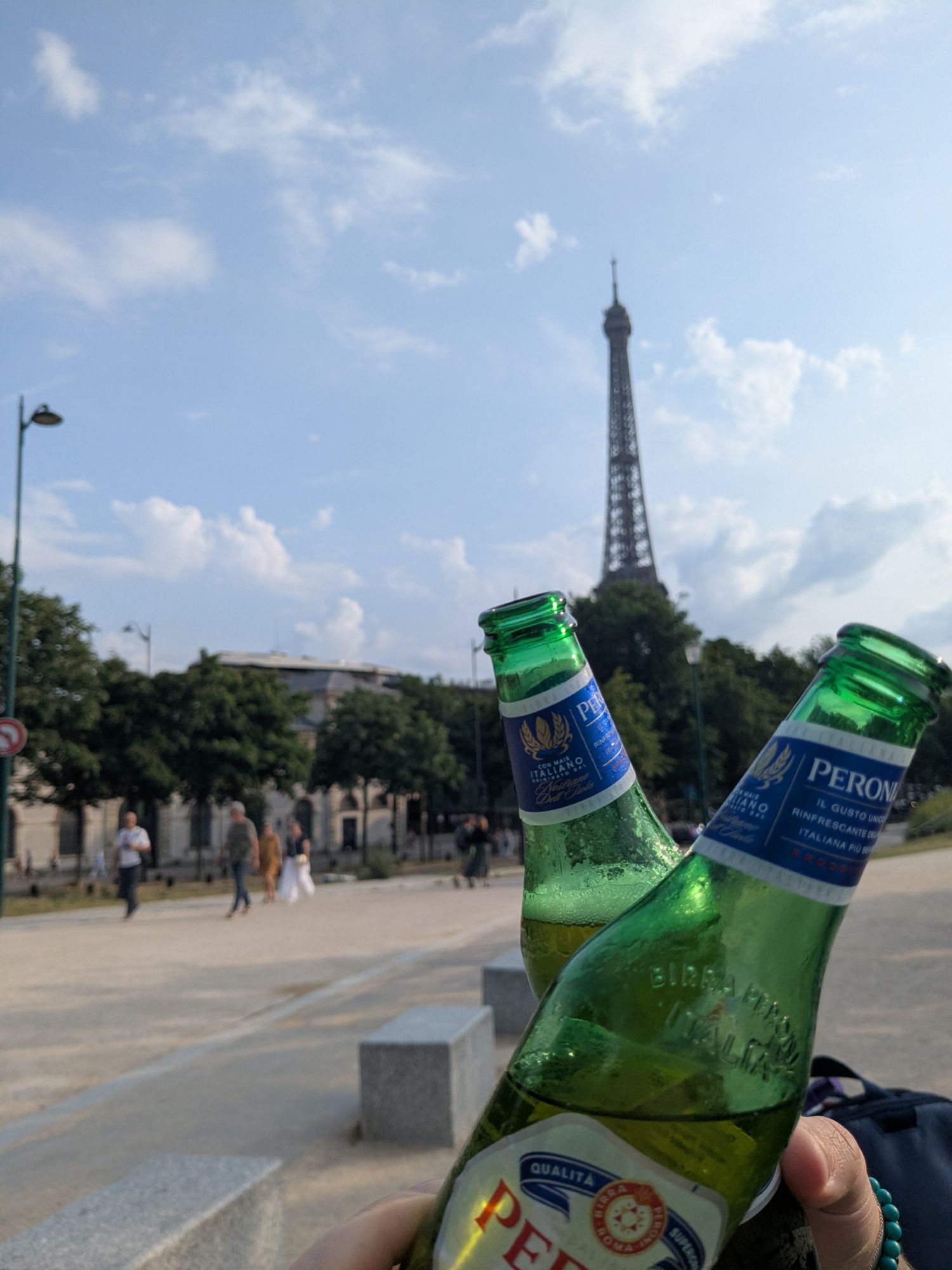 We made our way back to the Eiffel side of the Seine, grabbing some beers and chilling across from the Jacques Chirac museum – like cultured jakeys – as we waited for the sun to lower a little.