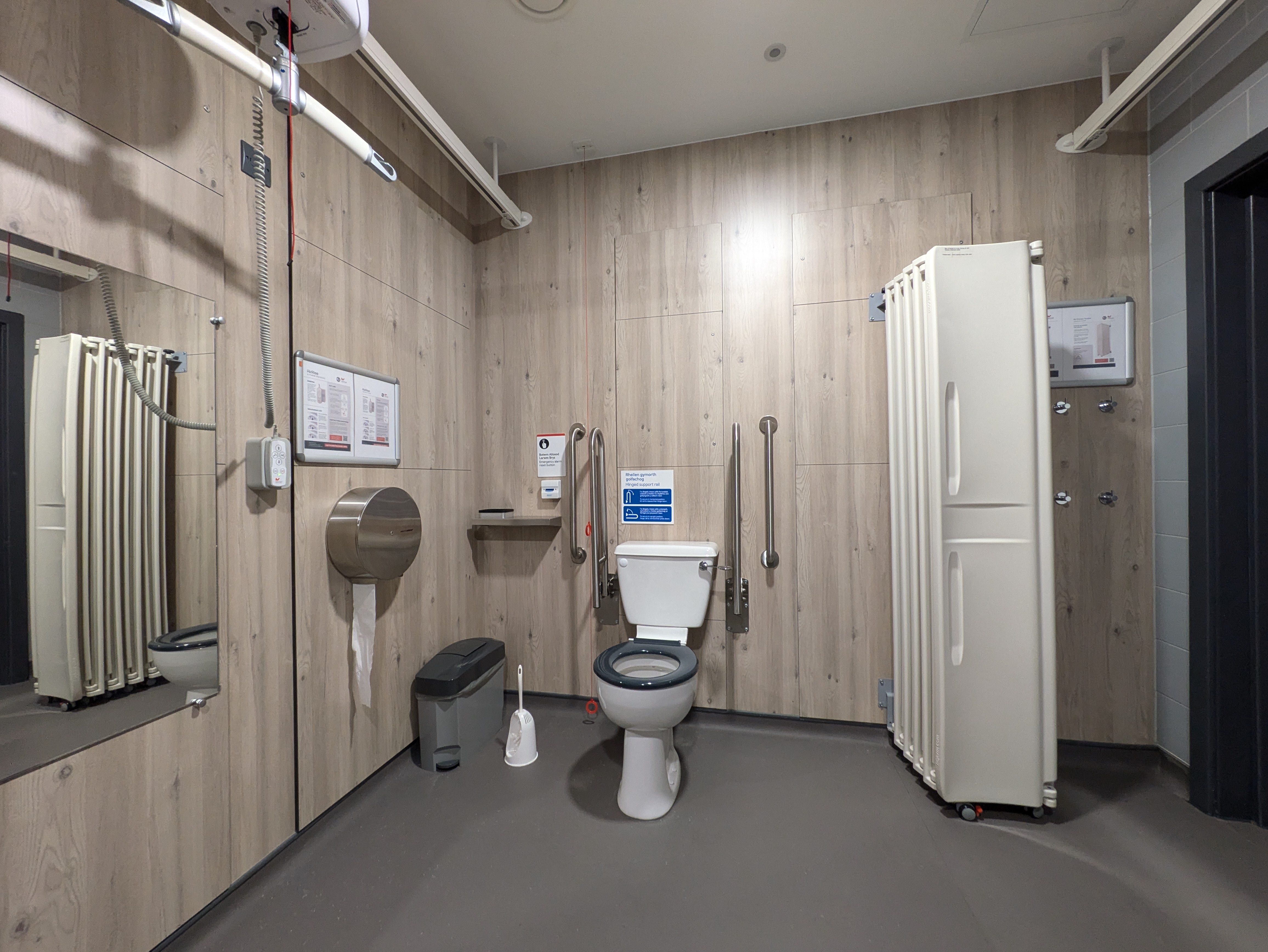 The door opens outwards, and there’s just about everything you’d need in a Changing Places toilet.